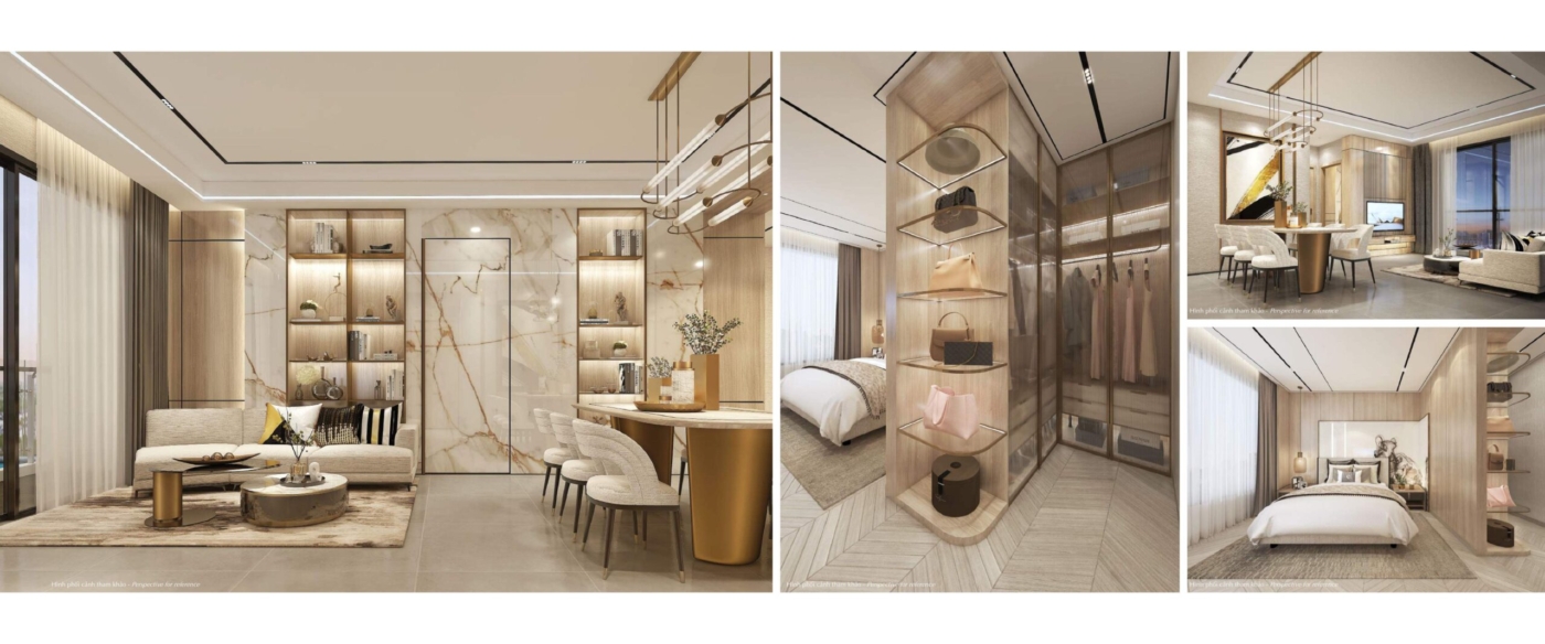 Không gian bên trong căn hộ được bố trí thông minh với phòng khách liên thông ban công, bếp mở hiện đại, phòng ngủ khép kín và logia riêng. Nội thất bàn giao được trang bị bằng vật liệu nhập khẩu cao cấp từ châu Âu, mang lại cảm giác sang trọng và bền vững theo thời gian.