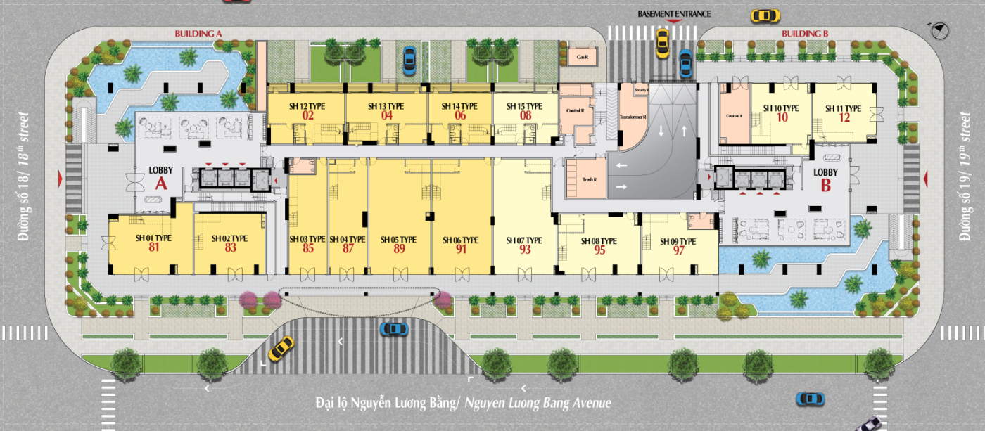 • Vị trí chiến lược trên trục đường Nguyễn Lương Bằng – trung tâm tài chính, thương mại và văn phòng của khu đô thị Phú Mỹ Hưng.