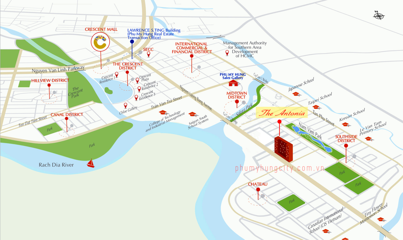 Vị trí “vàng” giữa khu đô thị hiện hữu giúp The Antonia thừa hưởng toàn bộ hệ sinh thái tiện ích của Phú Mỹ Hưng, đồng thời có giá trị gia tăng bền vững khi khu Nam TP.HCM tiếp tục được quy hoạch phát triển đồng bộ.